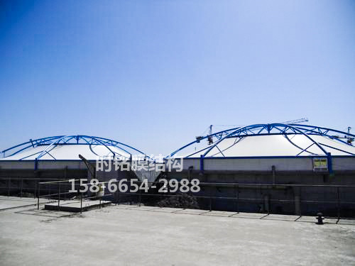 两者的区别就是膜结构可以从根本上解决污水池内废气对钢结构等部件的腐蚀,延长钢结构的使用寿命,增加了反吊膜结构的实用性。
