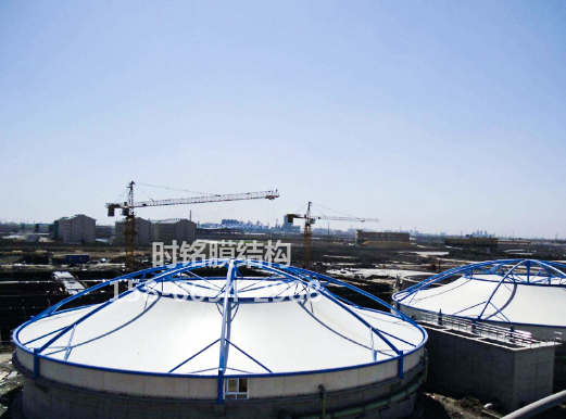 两者的区别就是膜结构可以从根本上解决污水池内废气对钢结构等部件的腐蚀,延长钢结构的使用寿命,增加了反吊膜结构的实用性。