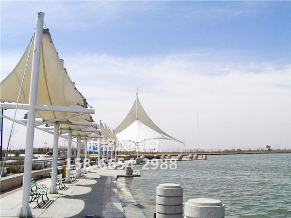 膜结构景观棚膜表面污垢的堆积与当地环境条件、膜材料特性和景观形态有关。从技术角度看,膜结构景观棚不一定需要清洗。对于大多数膜材料,清洗并不能延长其使用寿命。反之,清洗不当也会缩短其使用寿命。